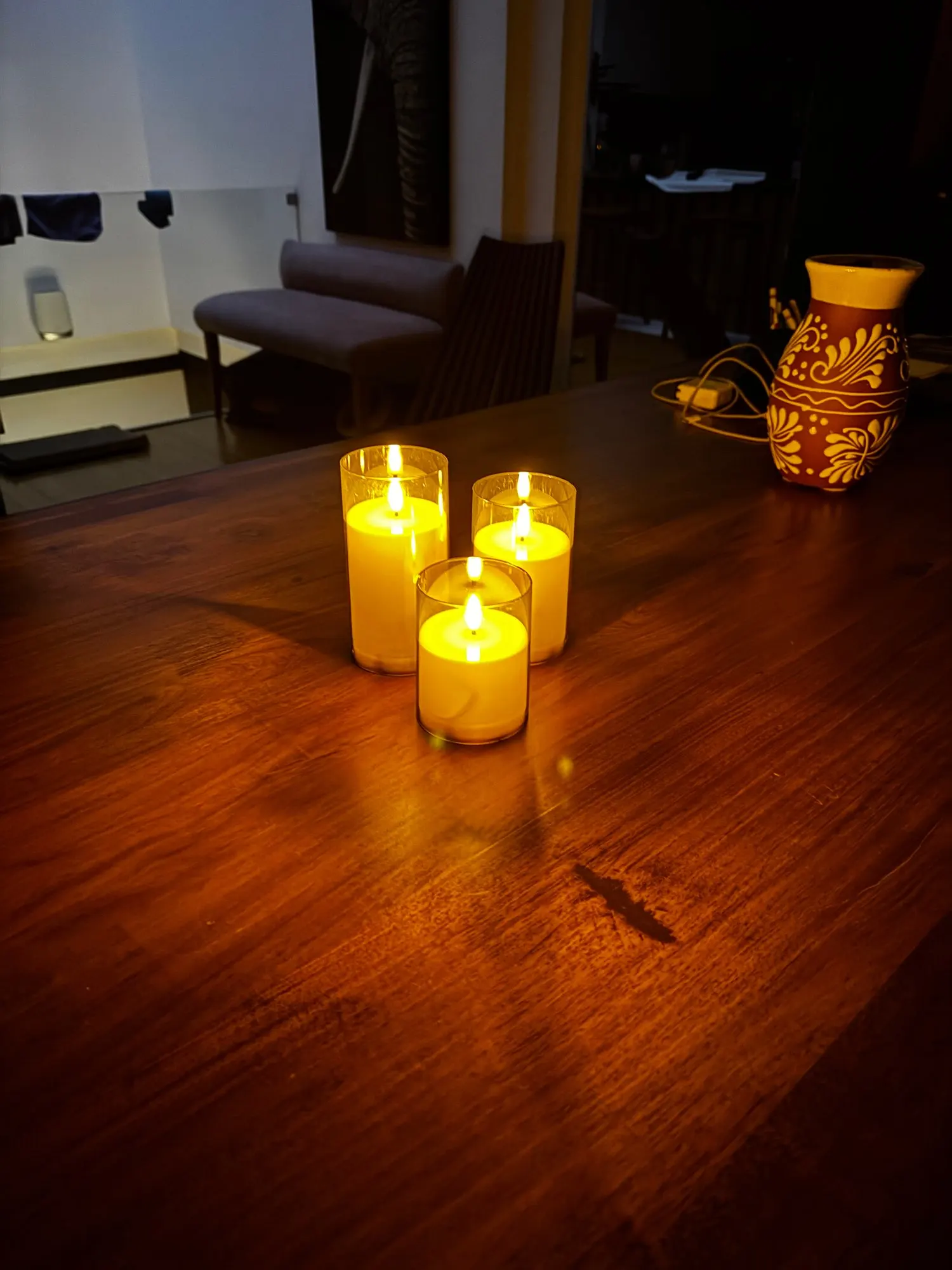 It's cheap, but when you light it at night, the light flickers beautifully like a real candle♪ I placed it while offering a prayer for my late dog♪ It requires three AA batteries, so I'll set a timer! Thank you for the wonderful product!