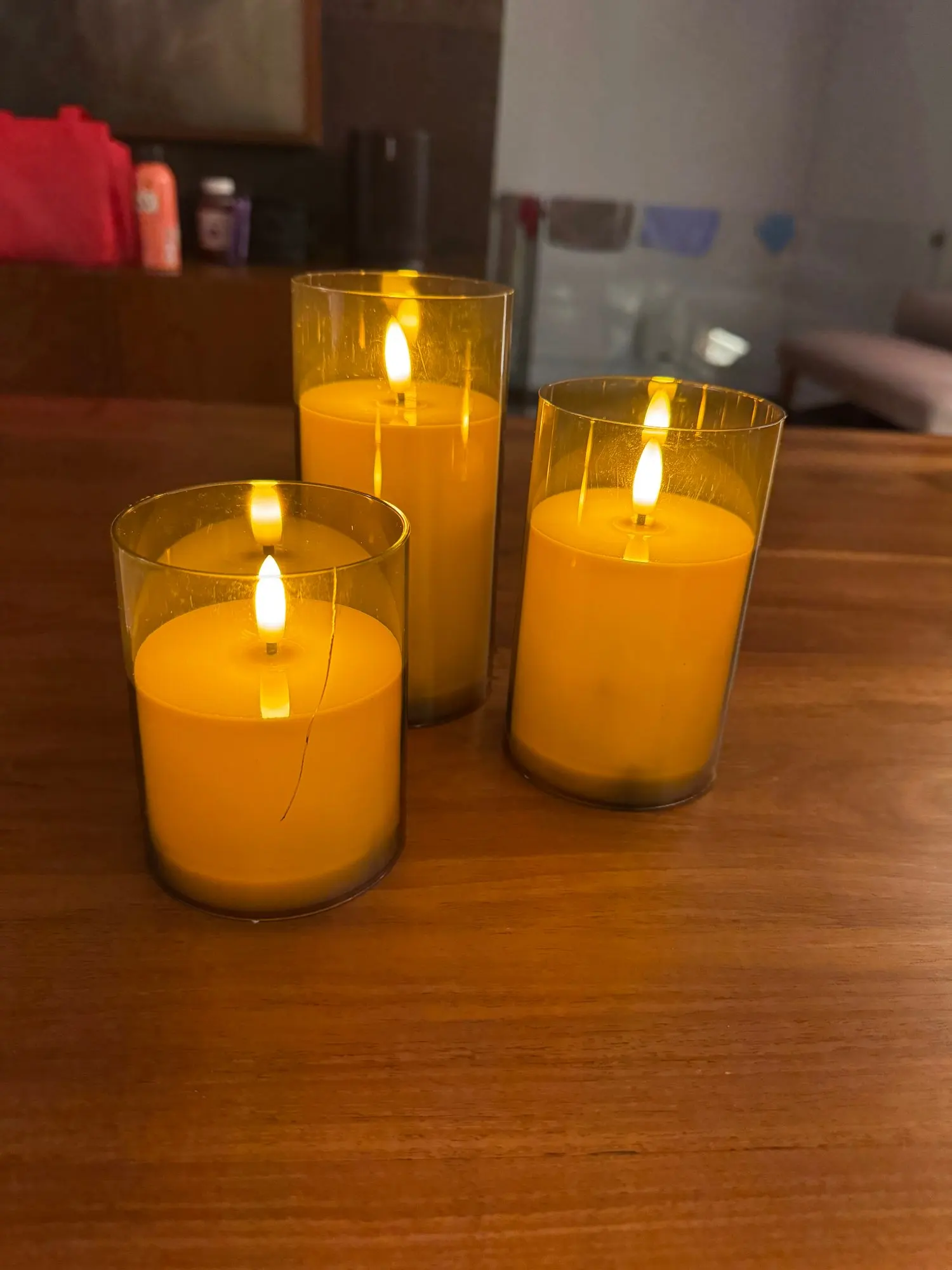 Create a warm, inviting ambiance in any space with this set of LED Flameless Candles. Designed with realistic flickering flames and clear acrylic glass, these battery-powered candles mimic the glow of real candles without the risk of fire or mess. Perfect for weddings, parties, or cozy home décor, they bring a touch of elegance and serenity to any room.